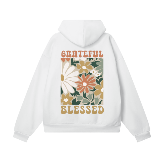 Grateful & Blessed Floral Fleece Hoodie, Cozy Pullover for Fall,